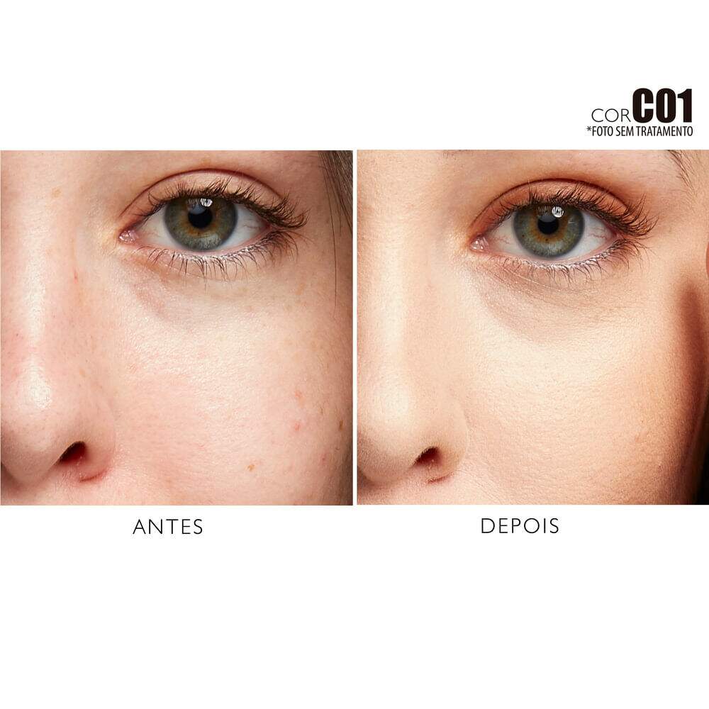 Alta cobertura; Acabamento soft natural; Suaviza os poros e textura da pele;. Cobre manchas, olheira, vermelhidão, melasmas e acne; Resistente à água; Para todos tipos de pele; Permite construção de camadas; Não craquela ou resseca; Confortável e longa duração; Pele com aparência viçosa; Produto vegano; Sem glúten; Sem parabenos; Sem fragrância; Não testado em animais.